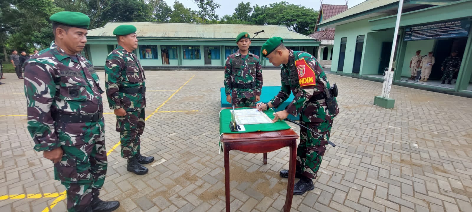 BARABAI-Komandan Kodim 1002/HST Letkol Kav Gagang Prawardhana.S.I.P.,M.Han menerima korp raport Serah Terima Jabatan dan Anggota masuk Satuan, bertempat di halaman Makodim jalan Telaga Padawangan
