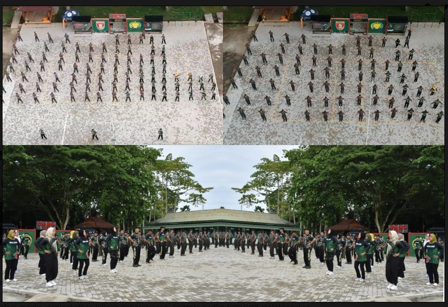 Jum’at Sehat, Anggota Kodim 1002/HST Lakukan Senam SKJ-88, Jalan Santai Dan Olahraga Bola Voli
