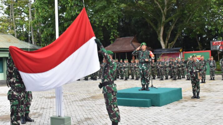 Kodim 1002/HST Laksanakan Upacara Pengibaran Bendera Merah Putih