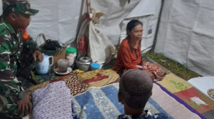 Peduli Warga Binaan Terdampak Banjir, Babinsa Koramil 1002-05/Pandawan Sambangi Warga Di Tenda Darurat