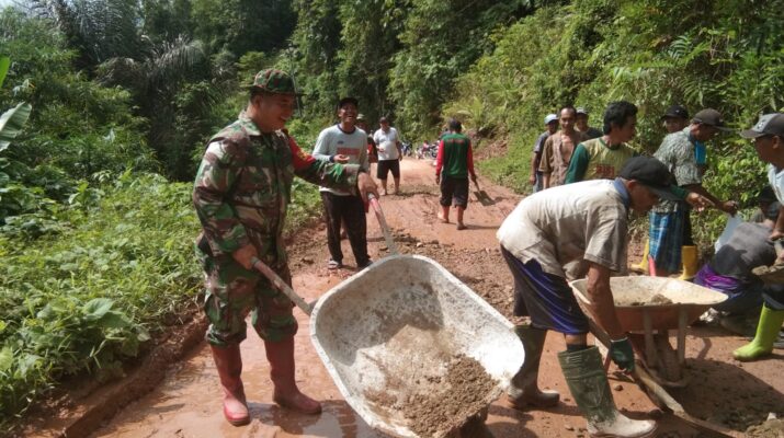 Kompak Babinsa Koramil 1002-07/Batu Benawa Dan Warga Desa Patikalain Gotong Royong