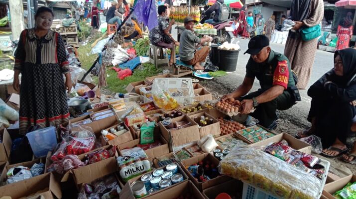 Babinsa Kodim 1002/Hulu Sungai Pantau Harga Kebutuhan Bahan Pokok di Pasar Tradisional