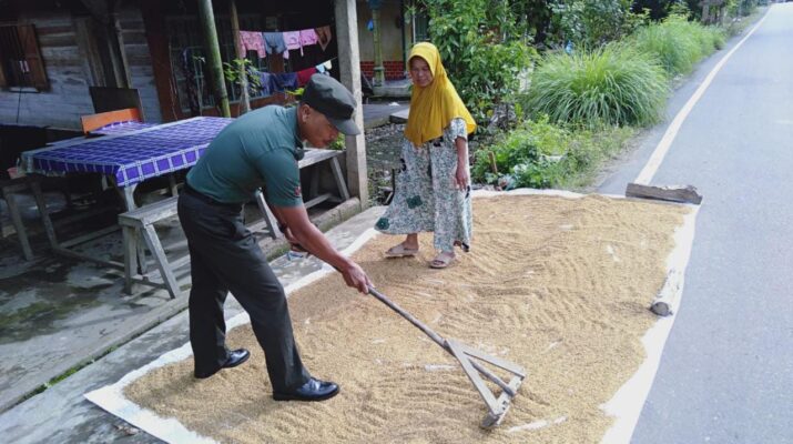 Komunikasi Sosial Dengan Warga Binaan, Kopda Miftah Bantu Jemur Padi