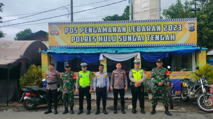 BARABAI-Sinergitas tanpa batas TNI-POLRI bersama instansi terkait pengamanan lalulintas arus balik pasca liburan lebaran 1444 H tahun 2023 di pos terpadu Burung Anggang Barabai