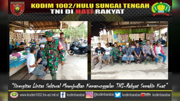 BARABAI-Kompak Bintara Pembina Desa (Babinsa) bersama Bhabinkamtibmas melaksanakan kegiatan komunikasi sosial (Komsos) di lokasi TMMD ke-116 Kodim 1002/HST. Minggu (21/05/2023). Koordinasi selalu dilaksanakan bersama
