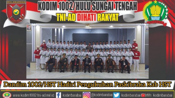BARABAi-Komandan Kodim 1002/HST Letkol Kav Gagang Prawardhana.S.I.P.,M.Han menghadiri pengukuhan anggota Paskibraka Hulu Sungai Tengah di Pendopo Bupati HST Jl. Bhakti Kecamatan Barabai Kab. Hulu