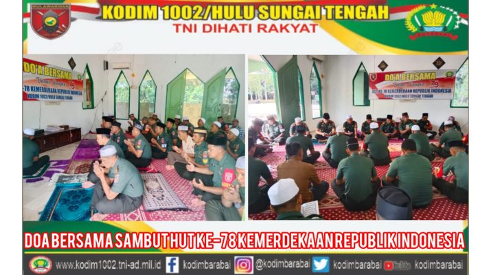 BARABAI-Seluruh anggota Kodim 1002/Hulu Sungai Tengah melaksanakan Doa Bersama dalam rangka menyambut HUT ke-78 Kemerdekaan Republik Indonesia bertempat di Musholla Al Khairul Fahmi di