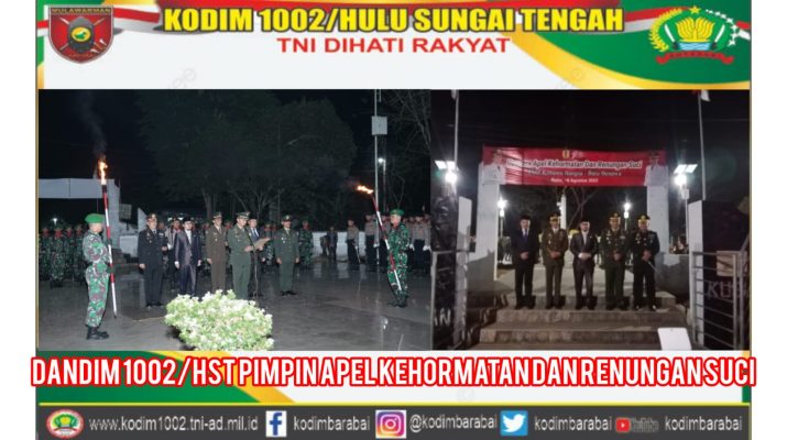 BARABAI-Komandan Kodim 1002/HST Letkol Kav Gagang Prawardhana.S.I.P.,M.Han memimpin upacara apel kehormatan dan renungan suci di taman makam pahlawan Kusuma Bangsa Pagat Batu Benawa. Kamis
