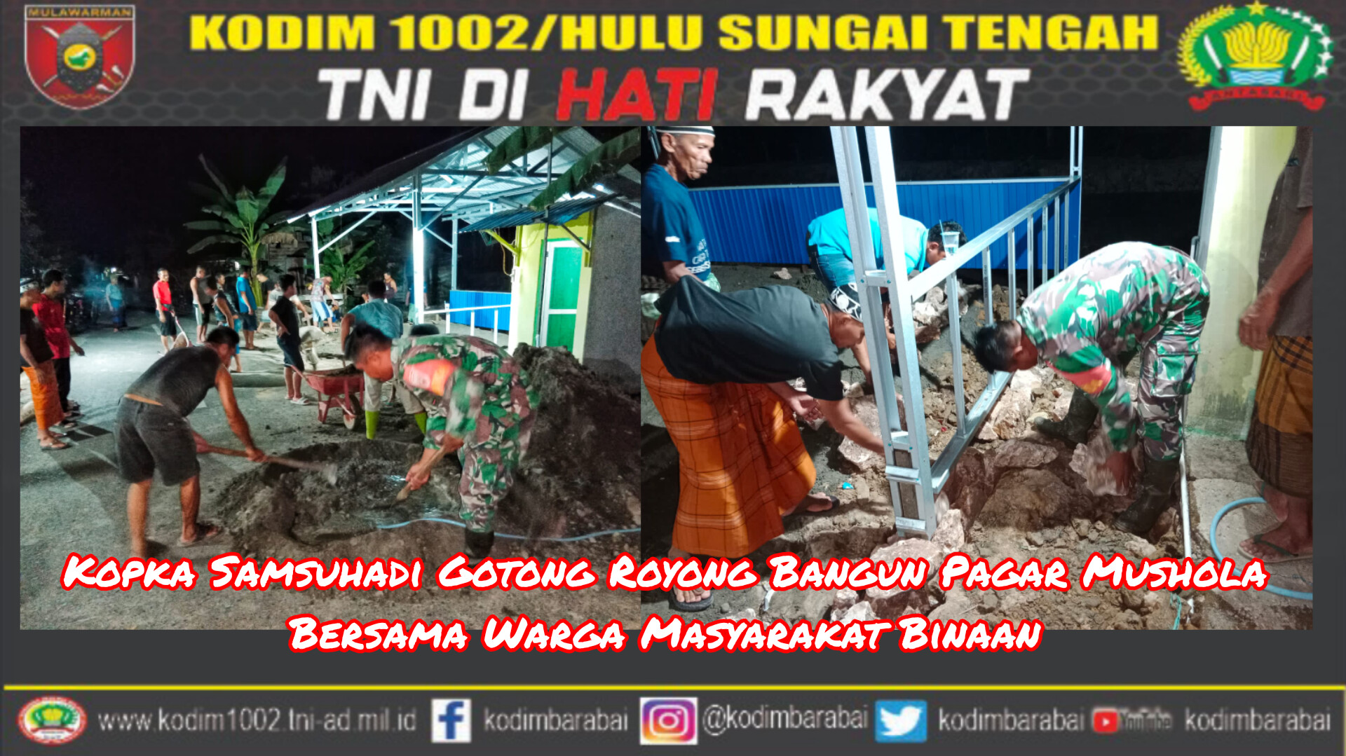Babinsa Koramil 1002-06/Barabai Gotong Royong Pembuatan Pagar Musholla Bersama Warga Binaan