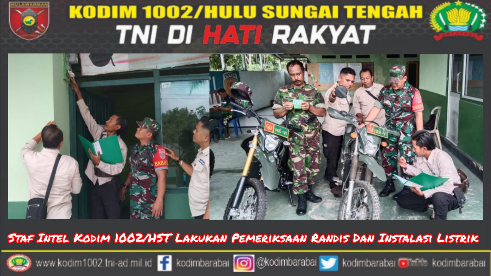 BARABAI-Staf Intel Kodim 1002/HST melaksanakan pemeriksaan kendaraan dinas Babinsa dan instalasi listrik jajaran Koramil Kodim Hulu Sungai Tengah, Selasa (24/10). Seperti yang dilakukan di