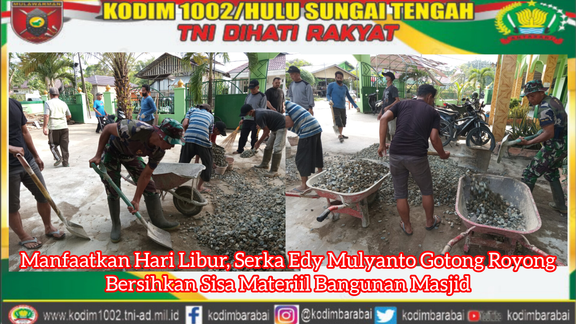 Manfaatkan Hari Libur, Serka Edy Mulyanto Gotong Royong Bersihkan Sisa Materiil Bangunan Masjid