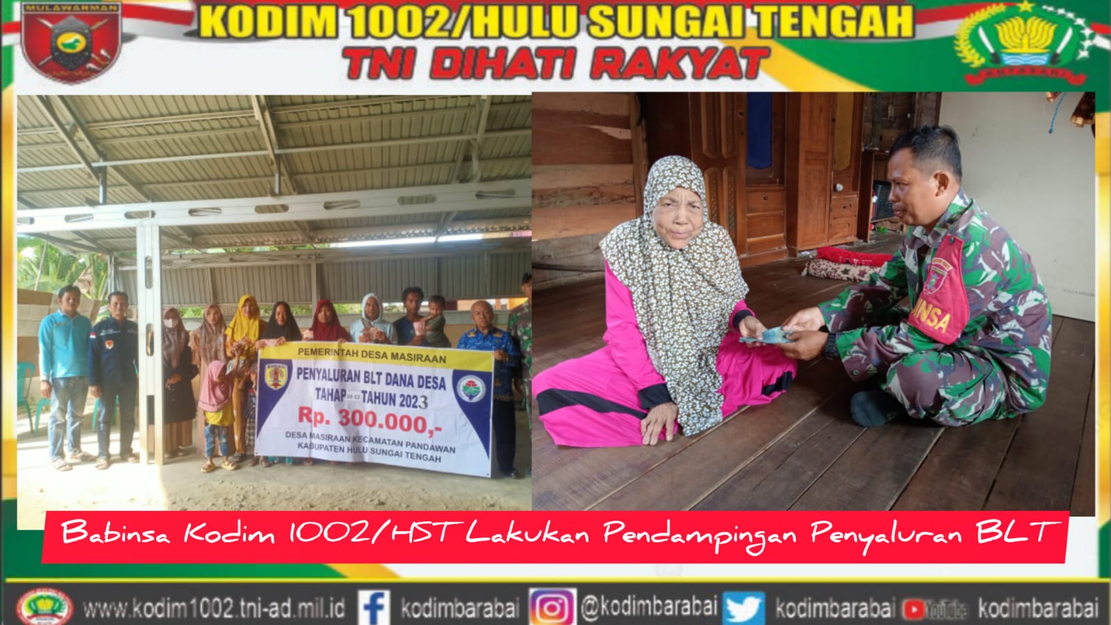 BARABAI-Babinsa Kodim 1002/Hulu Sungai Tengah melaksanakan pendampingan penyaluran Bantuan Langsung Tunai (BLT) di desa binaan masing-masing. Sabtu (11/11/2023) Seperti yang dilakukan salah satu Babinsa