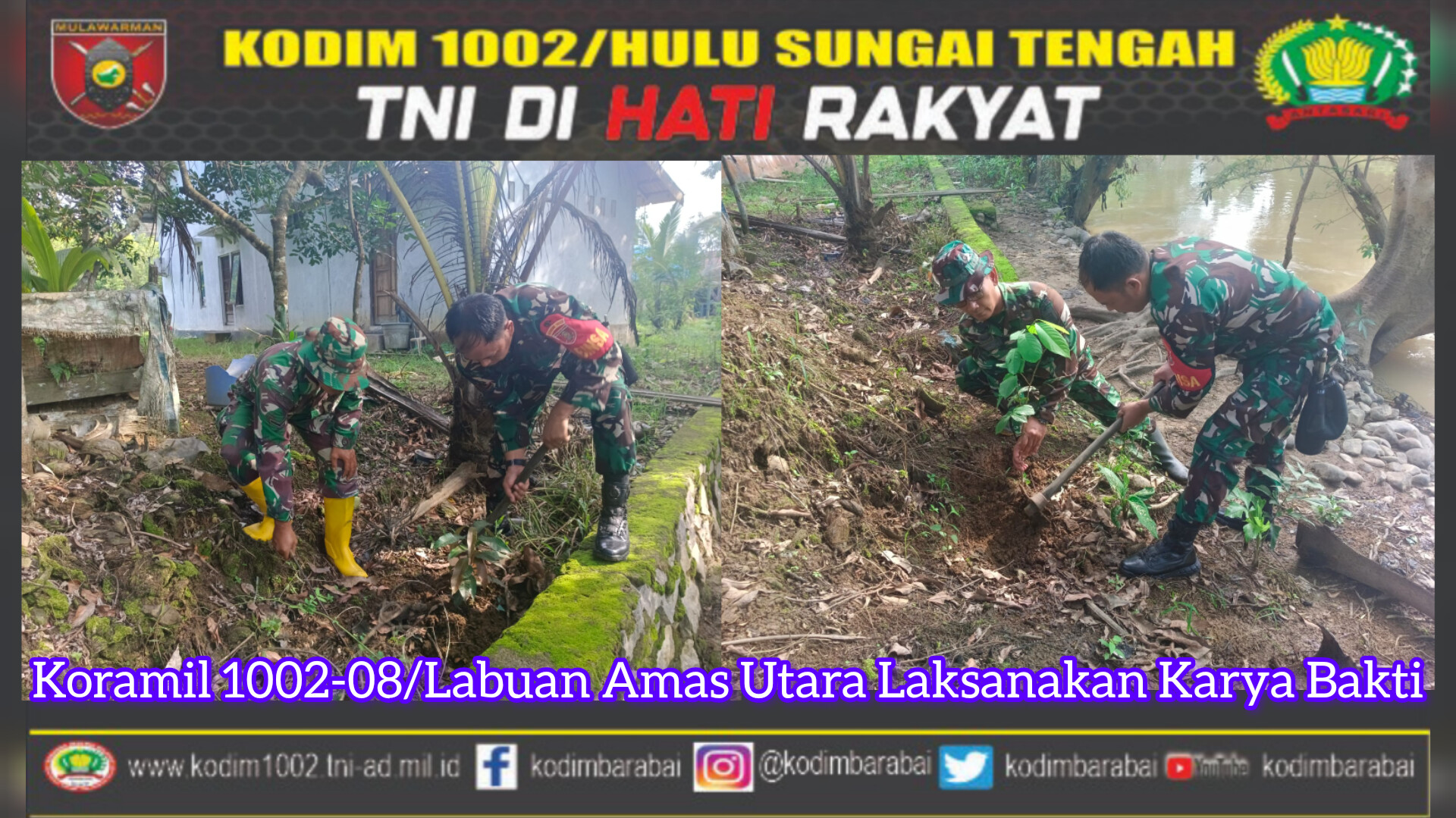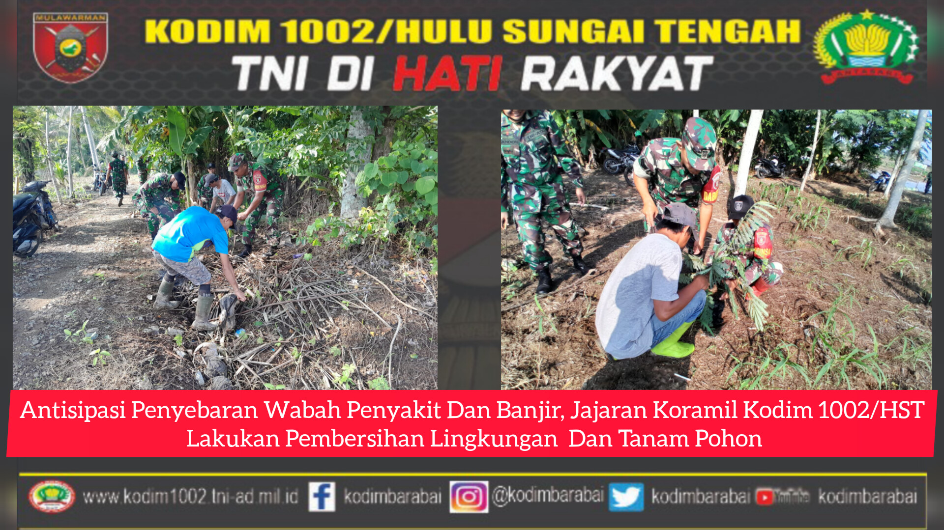 Antisipasi Penyebaran Wabah Penyakit Dan Banjir, Jajaran Koramil Kodim 1002/HST Lakukan Pembersihan Lingkungan Dan Tanam Pohon