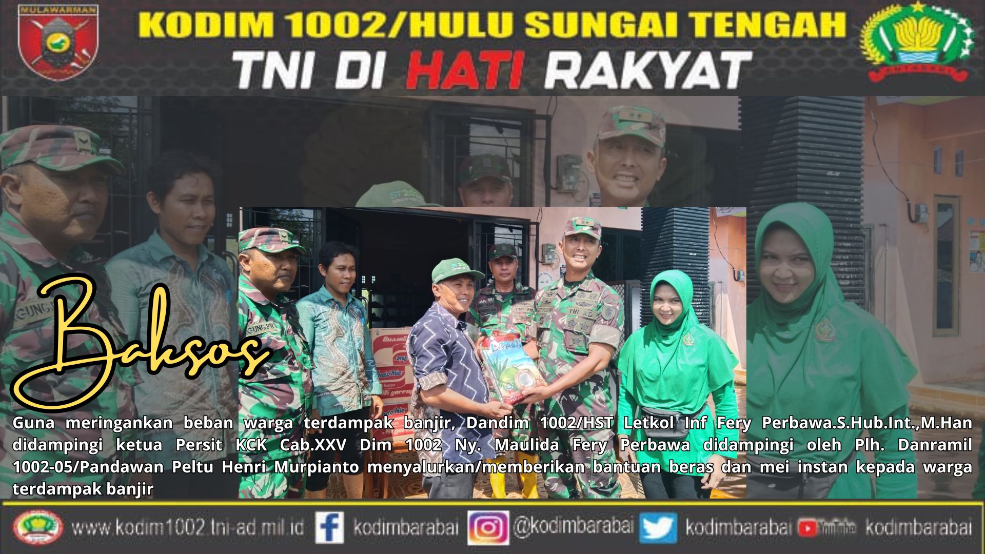 Banjir Masih Merendam Kayu Rabah, Dandim 1002/HST Kodam VI/Mlw Turun Langsung Salurkan Bantuan