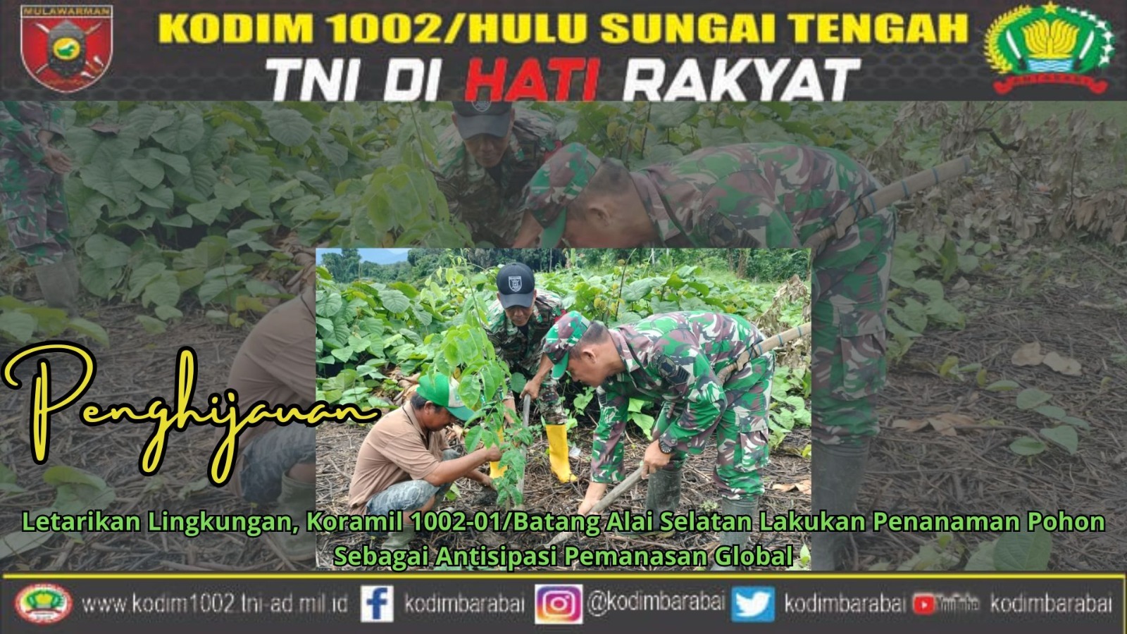 BARABAI-Babinsa Koramil 1002-01/Bas Sertu Agus Rohmat ajak warga binaan tanam pohon di Desa Birayang Timur Kecamatan Batang Alai Selatan Kab.Hulu Sungai Tengah.Senin (29/01/2024) Hari