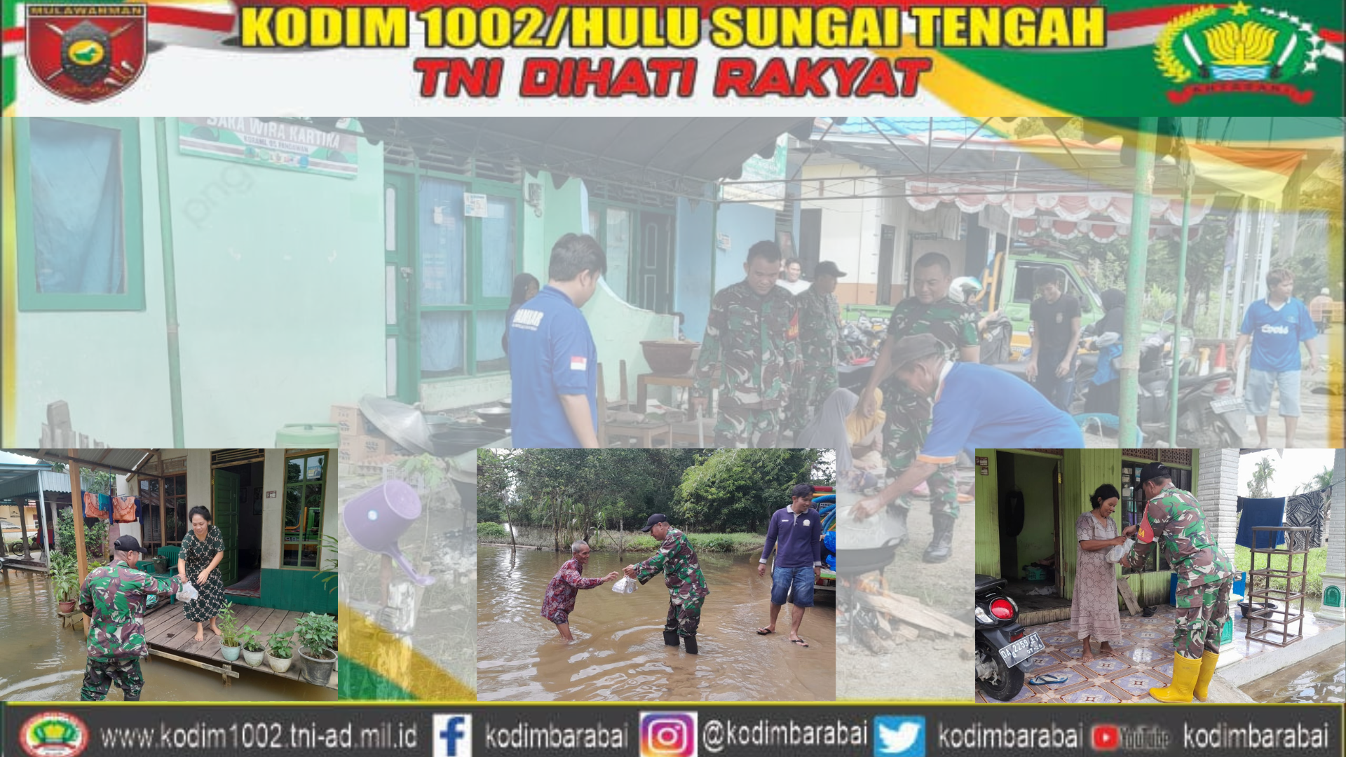 Koramil 1002-05/Pandawan Bantu Distribusi Sembako Bagi Warga Terdampak Banjir