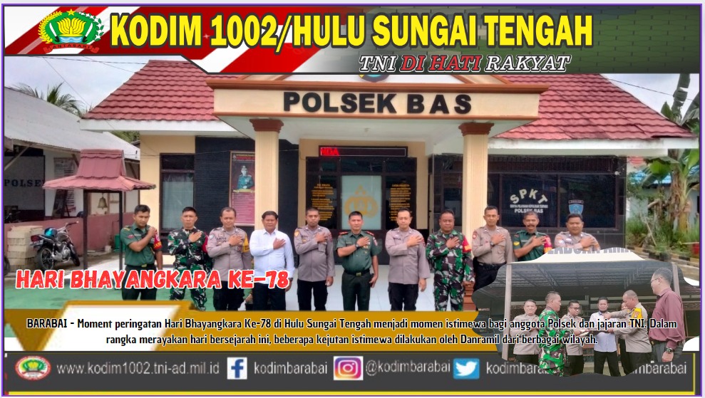 Barabai – Momentum peringatan Hari Bhayangkara Ke-78 di Hulu Sungai Tengah disambut dengan kejutan istimewa dari jajaran TNI kepada anggota Polres setempat. Pada Senin