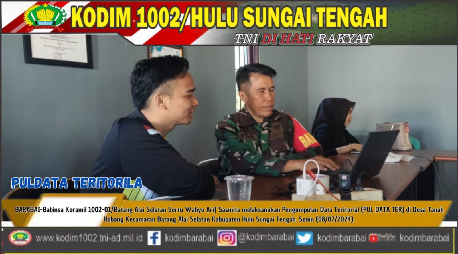BARABAI – Babinsa Koramil 1002-01/Batang Alai Selatan, Sertu Wahyu Arif Sasmita, melaksanakan kegiatan Pengumpulan Data Teritorial (PUL DATA TER) di Desa Tanah Habang, Kecamatan