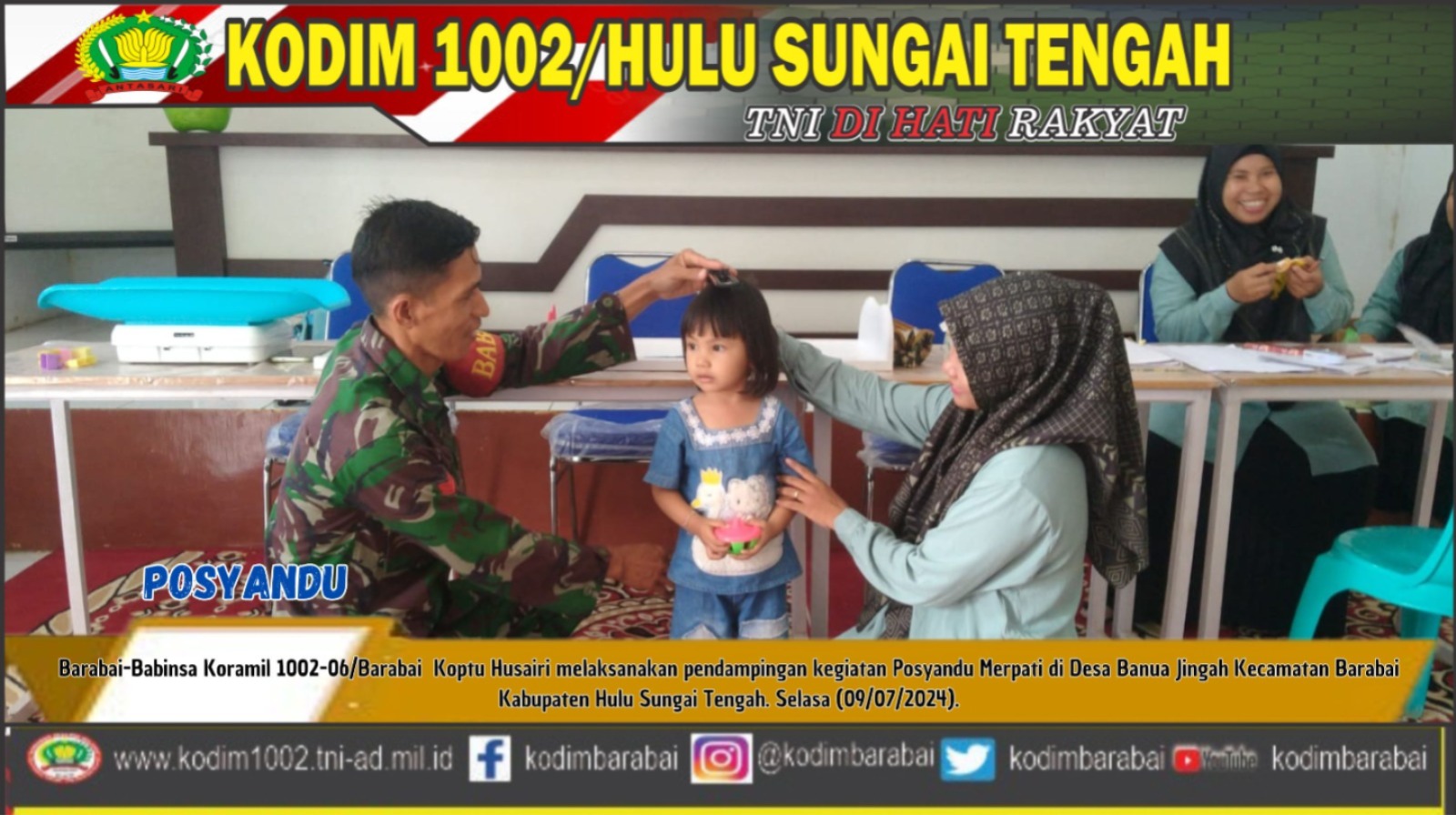 Barabai – Babinsa Koramil 1002-06/Barabai, Koptu Husairi, melaksanakan pendampingan kegiatan Posyandu Merpati di Desa Banua Jingah, Kecamatan Barabai, Kabupaten Hulu Sungai Tengah, pada Selasa