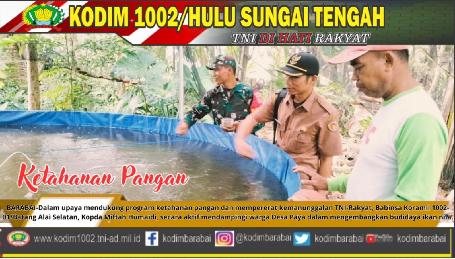 Barabai- TNI aktif berkontribusi dalam pembangunan pertanian berkelanjutan melalui pendampingan langsung kepada petani. Salah satu contoh nyata dukungan ini terlihat dari kegiatan Serda Alkusnadi