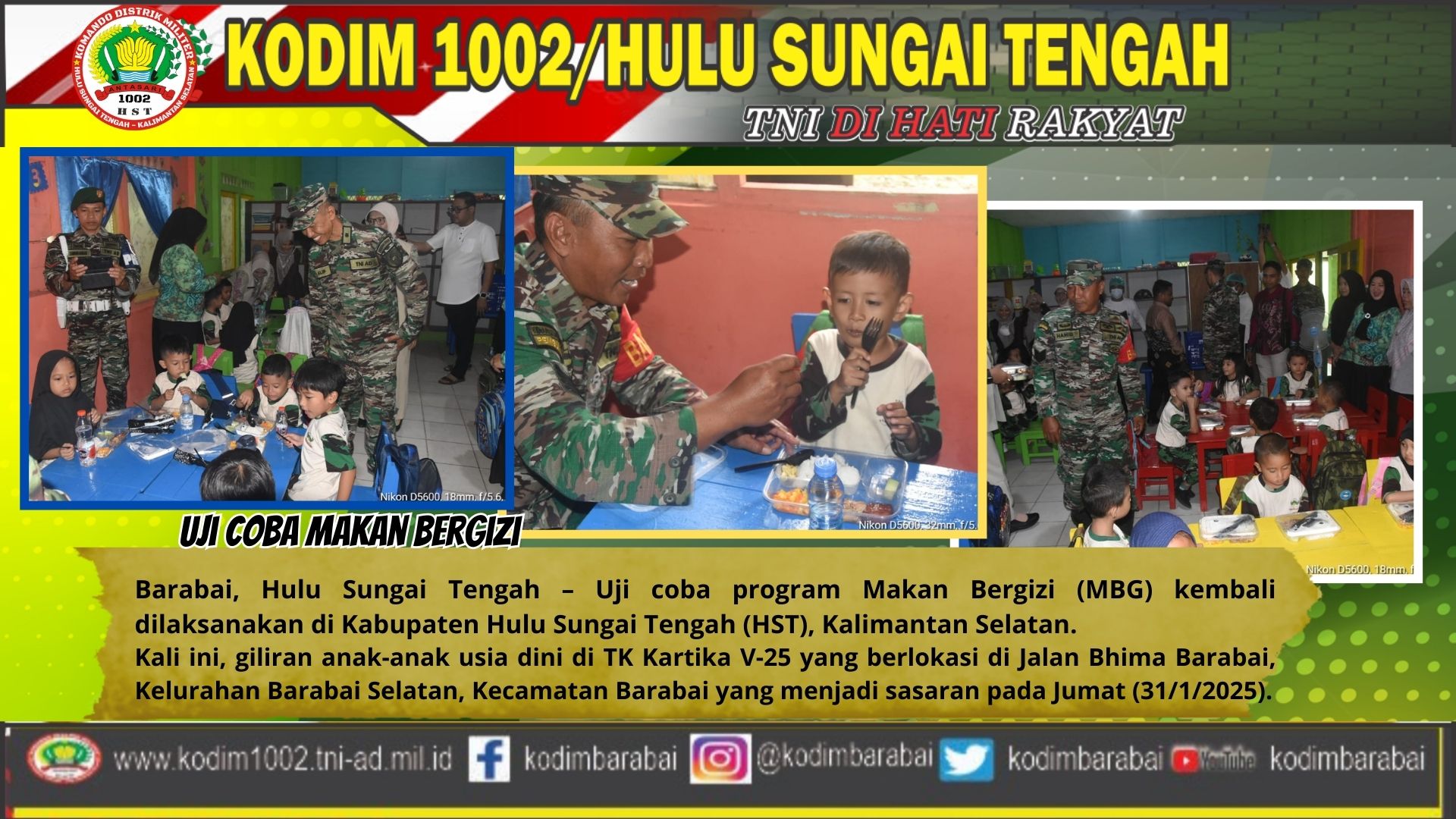 Kodim 1002/HST Uji Coba Makan Bergizi di TK Kartika V-25