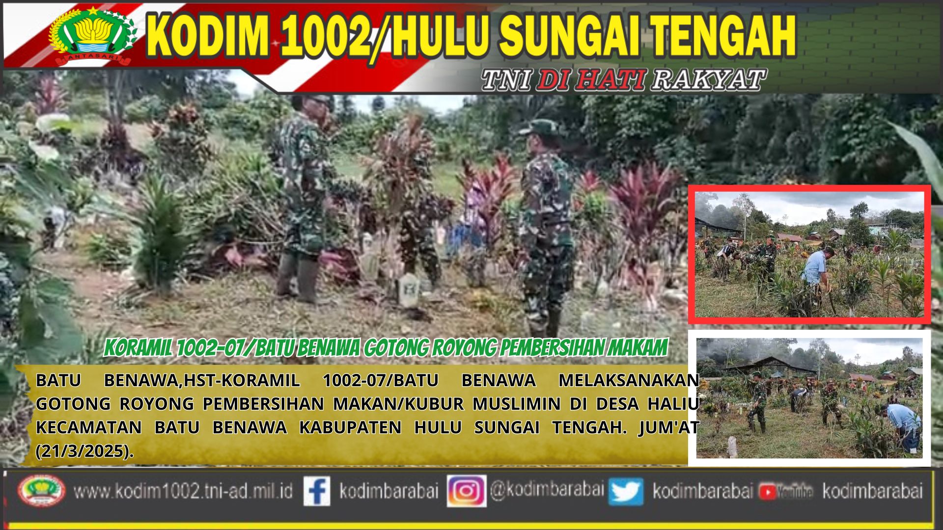 Menjaga Kebersihan Lingkungan, Koramil Batu Benawa Ajak Warga Bersihkan Makam
