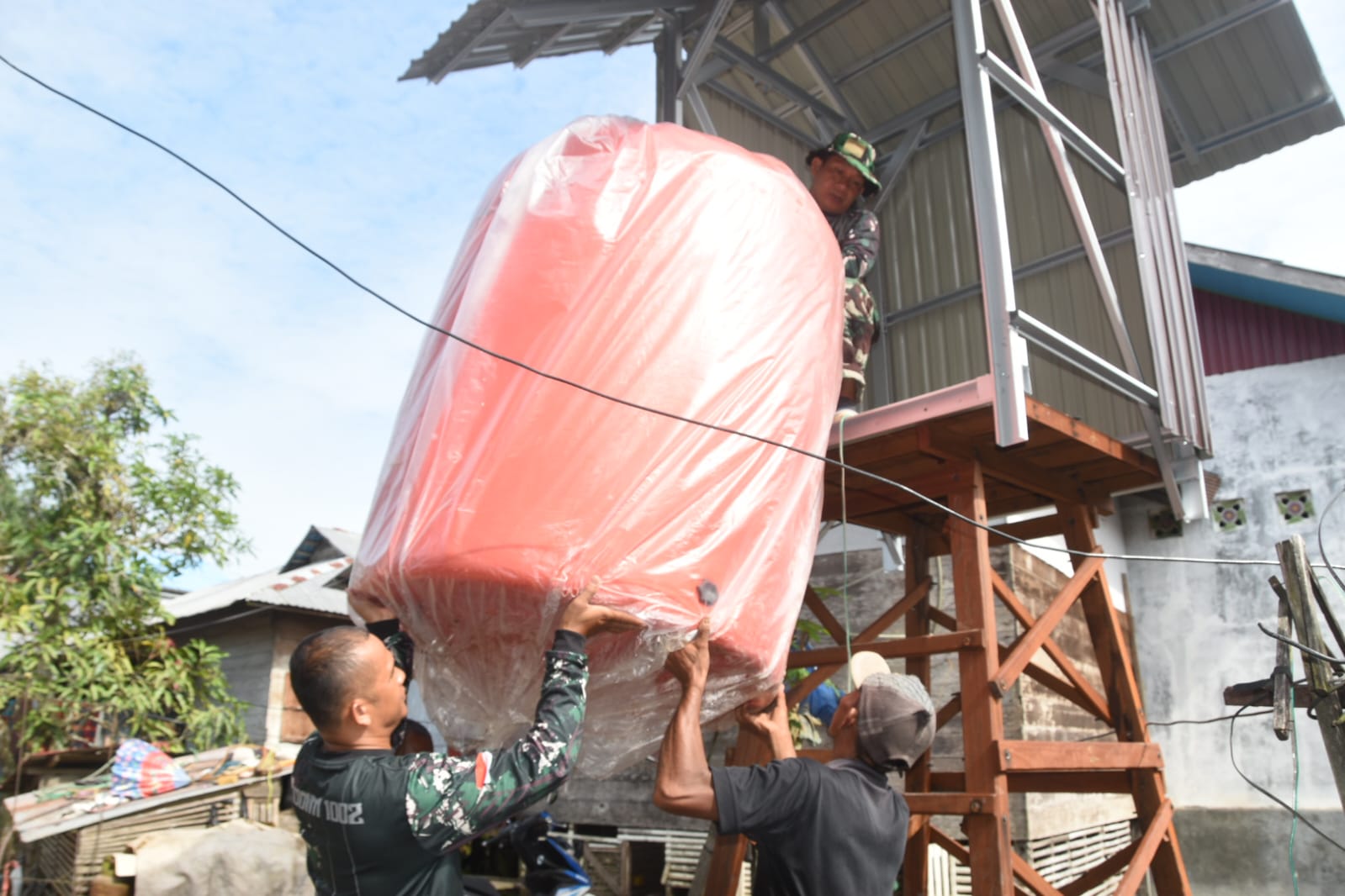 Satgas TMMD Gesit Pasang Atap Seng Teras Langgar Darussalam Sebagai Sasaran Tambahan