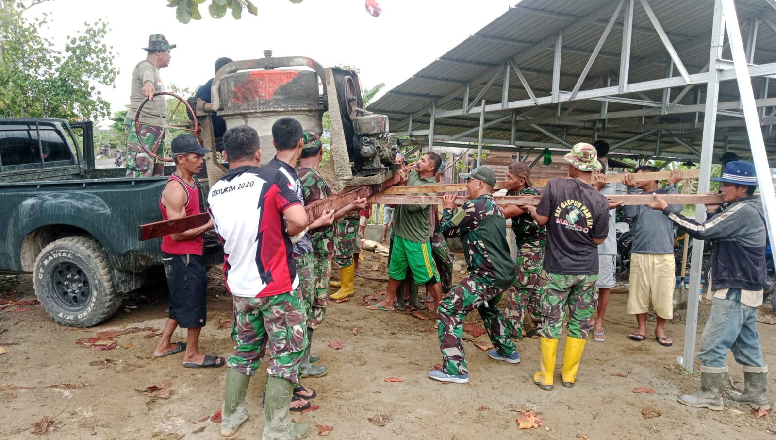 Satgas TMMD Datangkan Molen Percepat Pengecoran Langgar Darussalam