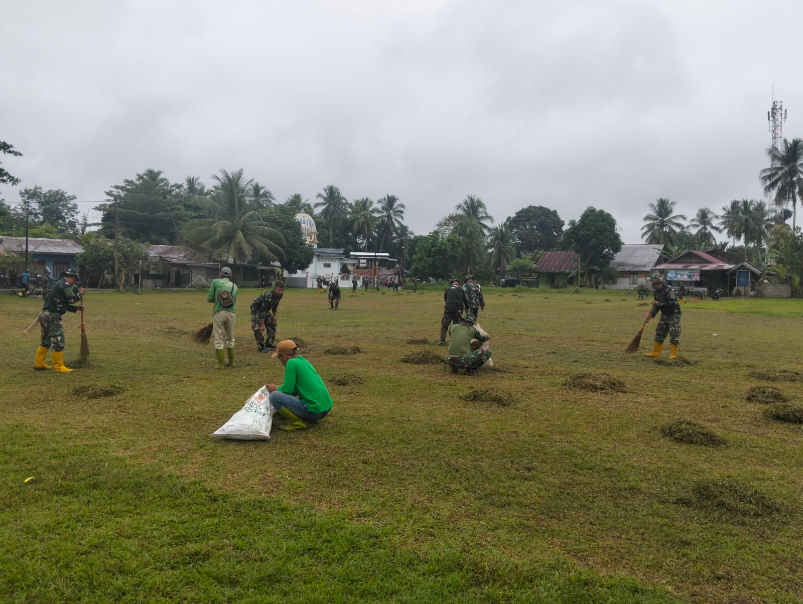 Jelang Penutupan, Satgas TMMD dan Warga Bersihkan Lapangan Upacara