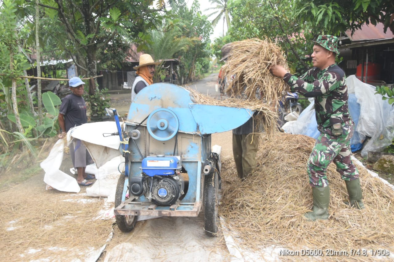 Tunjukkan Kepedulian, Anggota Satgas TMMD Bantu Warga Rontok Padi Sebelum Bekerja Haruyan, Hulu Sungai