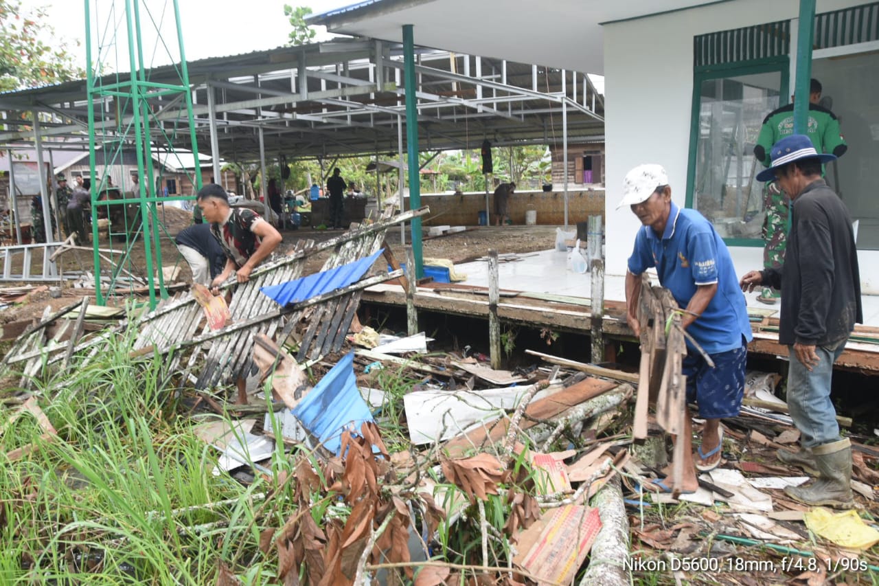 Haruyan, Hulu Sungai Tengah – Upaya percepatan rehabilitasi Langgar Darussalam dalam program TNI Manunggal Membangun Desa (TMMD) ke-124 Kodim 1002/Hulu Sungai Tengah (HST) di