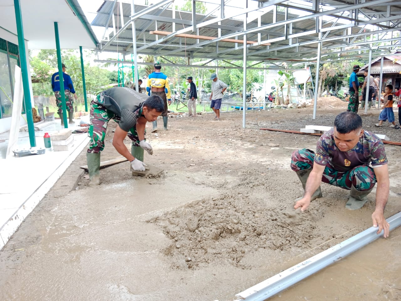 Kejar Target, Satgas TMMD Langsung Lakukan Pengecoran Teras Langgar Darussalam