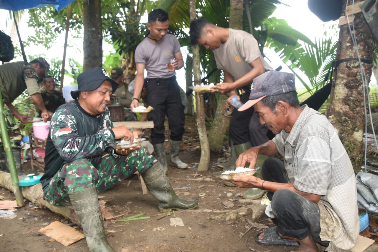 Kebersamaan Terjalin, Pasiterdim 1002/HST dan Warga Siapkan Makan Siang Bersama di Lokasi Rehab Langgar