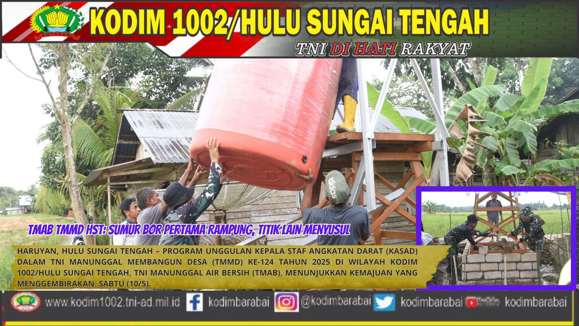HARUYAN, HULU SUNGAI TENGAH – Program unggulan Kepala Staf Angkatan Darat (KASAD) dalam TNI Manunggal Membangun Desa (TMMD) ke-124 tahun 2025 di wilayah Kodim