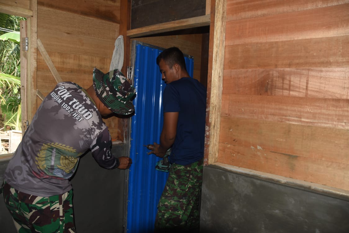 Rehab RTLH Program TMMD ke-124 Kodim 1002/HST Masuki Tahap Akhir, Pemasangan Pintu WC di Rumah Ardiansyah Dilakukan
