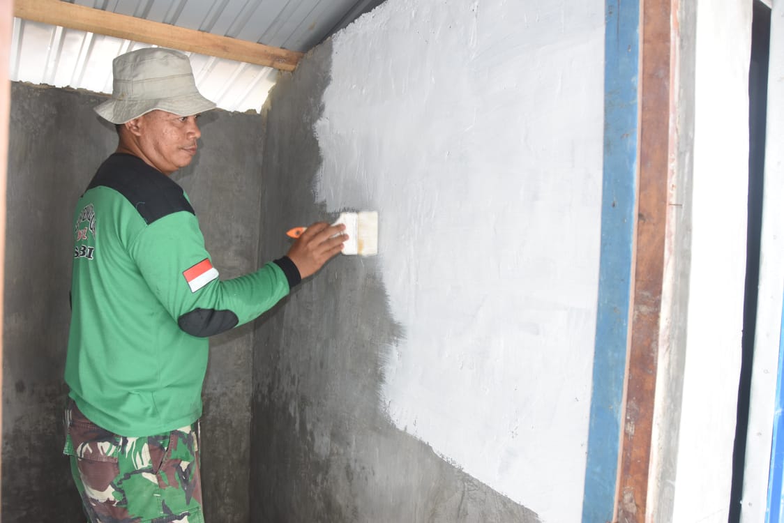 Rehab Langgar Darussalam Terus Berprogres, Satgas TMMD ke-124 Kodim 1002/HST Lakukan Pengecatan WC