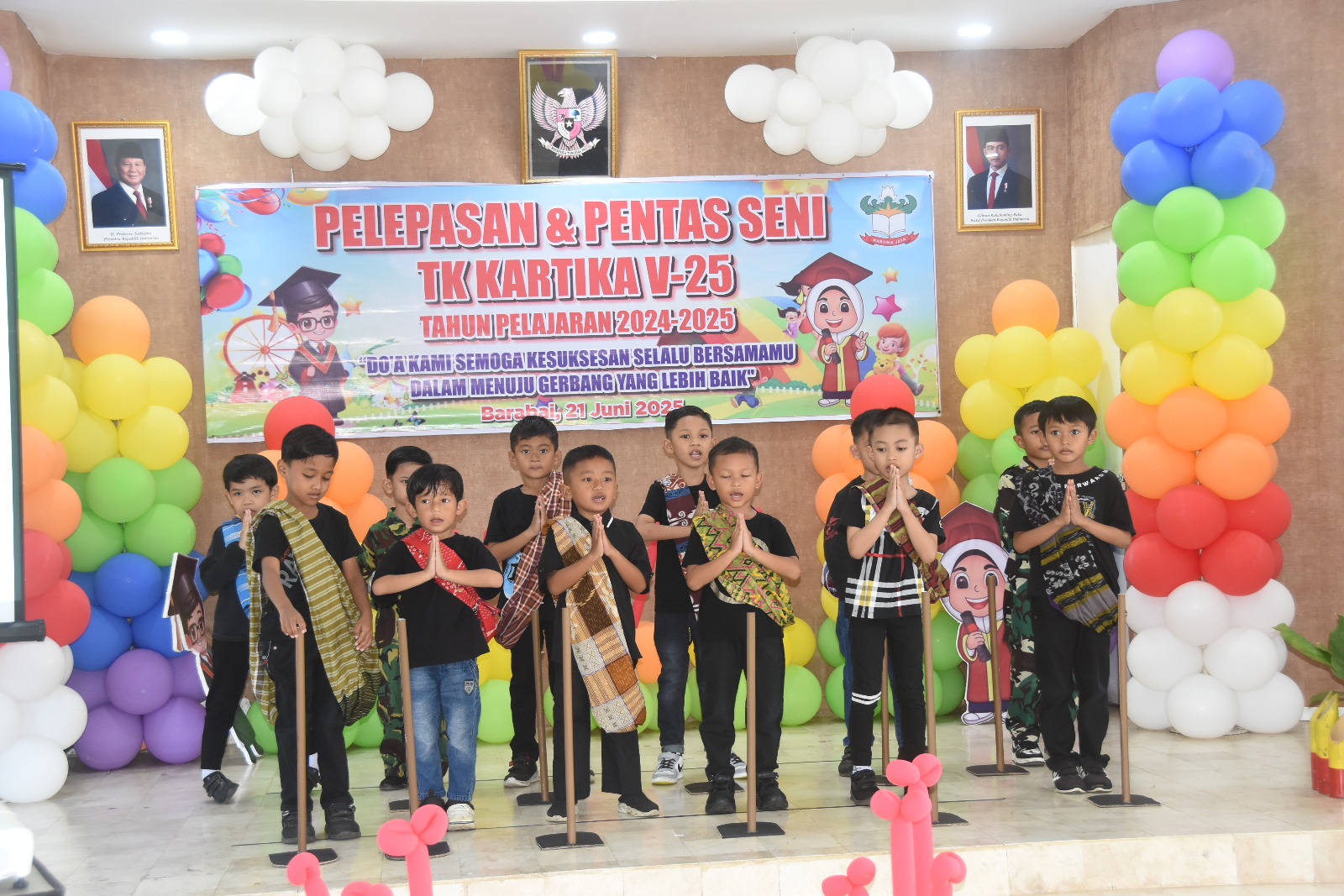 Barabai, Suasana haru dan bahagia menyelimuti Aula Sapta Marga Kodim 1002/HST pada Sabtu (21/6) saat TK Kartika V-25 Barabai menyelenggarakan Pentas Seni sekaligus prosesi