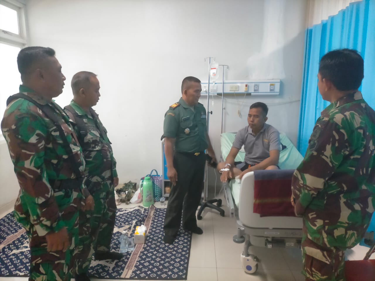 Barabai, Komandan Koramil (Danramil) 1002-08/Labuan Amas Utara, Kapten Inf Rudi Hartono, didampingi oleh anggota, hari ini menjenguk salah satu prajuritnya, Serda Agus Arahman, yang
