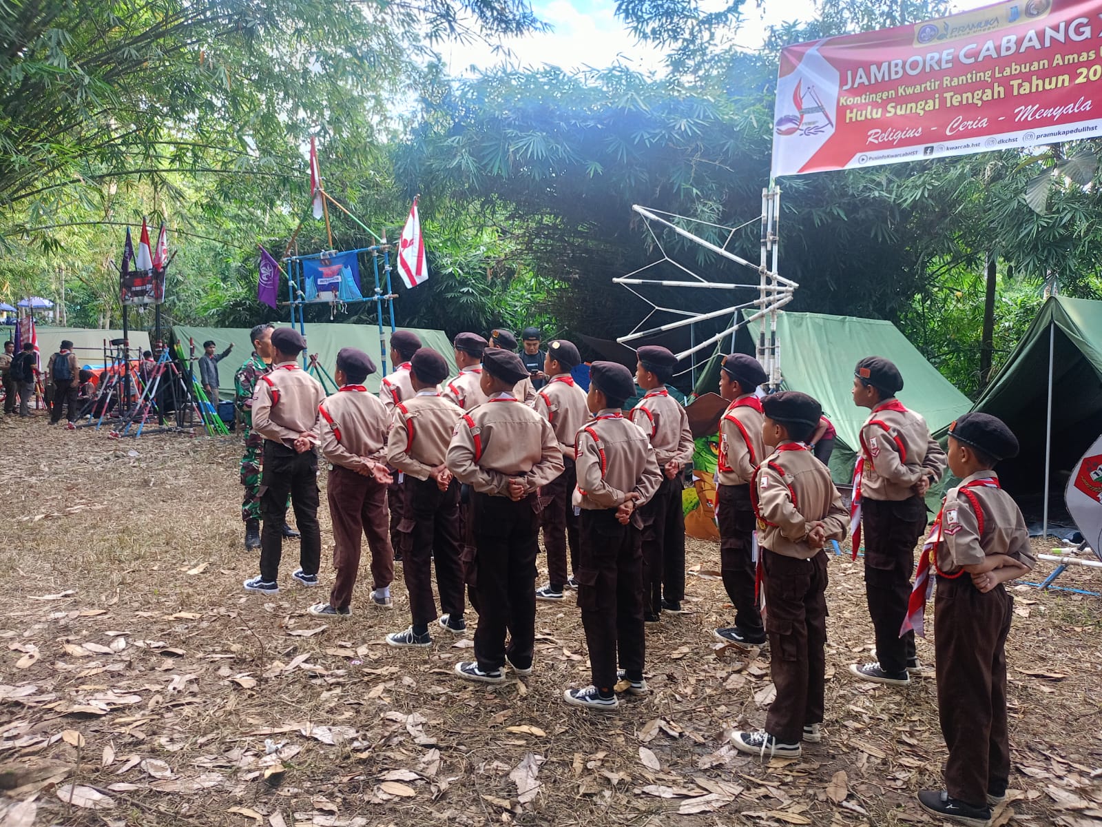Babinsa Koramil 1002-08/Labuan Amas Utara Dampingi Kegiatan Jambore Cabang XII Hulu Sungai