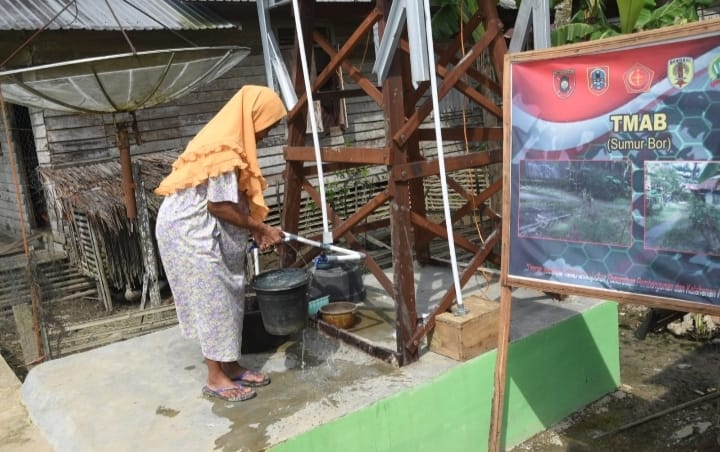 Haruyan, HST – Warga Desa Pengambau Hilir Luar kini tak perlu lagi bergantung pada sungai untuk memenuhi kebutuhan air bersih mereka. Program TNI Manunggal