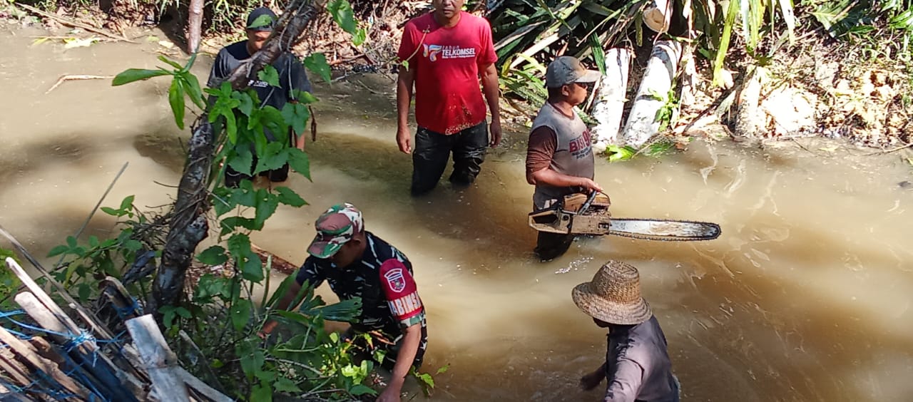 Hulu Sungai Tengah, Babinsa Koramil 1002-02/Batang Alai Utara (BAU) Sertu Edy Karyani bersama masyarakat Desa Sumanggi Seberang, Kecamatan Batang Alai Utara, Kabupaten Hulu Sungai