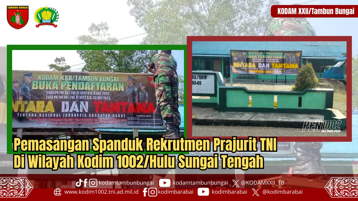 BARABAI – Kodim 1002/Hulu Sungai Tengah (HST) melalui jajaran Koramil melaksanakan pemasangan spanduk rekrutmen Prajurit TNI untuk Tamtama dan Bintara PK Tahun Anggaran 2025,