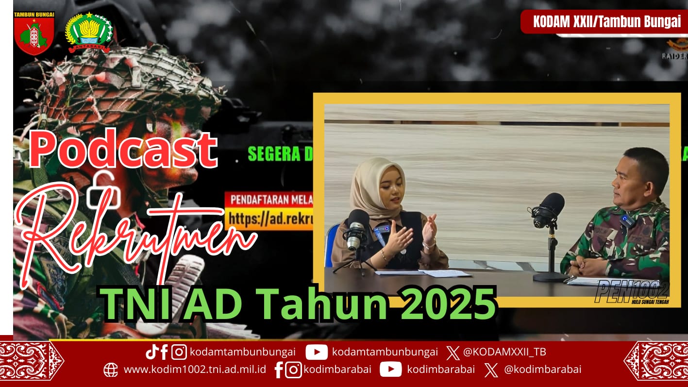 BARABAI – Kodim 1002/Hulu Sungai Tengah (HST) bekerjasama dengan Dinas Komunikasi dan Informatika (Kominfo) Kabupaten Hulu Sungai Tengah menggelar Podcast sosialisasi Rekrutmen Prajurit TNI,