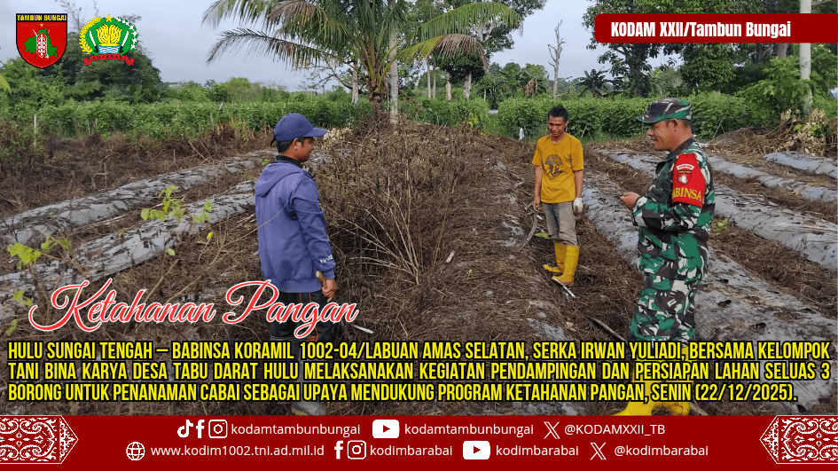 Sinergi Babinsa dan Petani: Lahan Cabai 3 Borong Mulai Disiapkan di Tabu Darat Hulu