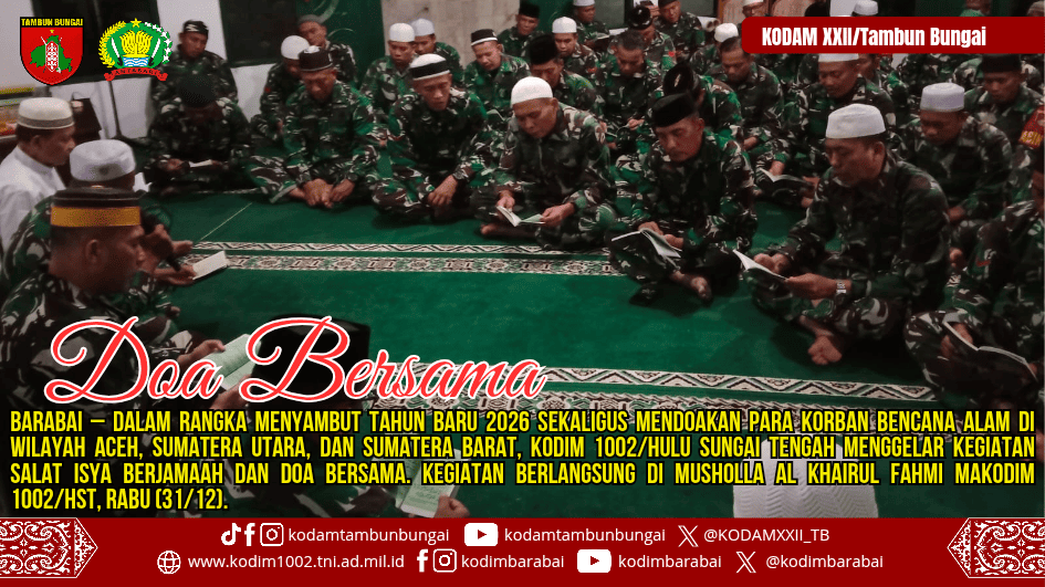 BARABAI – Dalam rangka menyambut Tahun Baru 2026 sekaligus mendoakan para korban bencana alam di wilayah Aceh, Sumatera Utara, dan Sumatera Barat, Kodim 1002/Hulu