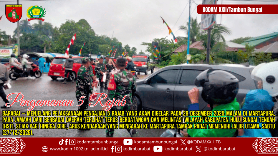 BARABAI – Menjelang pelaksanaan Pengajian 5 Rajab yang akan digelar pada 28 Desember 2025 malam di Martapura, para jamaah dari berbagai daerah terlihat terus