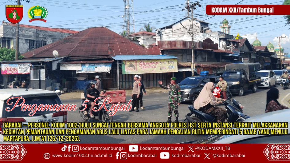 BARABAI – Personel Kodim 1002/Hulu Sungai Tengah bersama anggota Polres HST serta instansi terkait melaksanakan kegiatan pemantauan dan pengamanan arus lalu lintas para jamaah