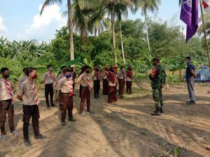 Bertindak selaku Pembina upacara sekaligus melantik 21 orang Dewan Kerja Saka Ranting Koramil 1002-08/Kasarangan adalah Serda Agus Arahman.
