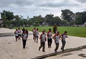 BARABAI-Anggota Kodim 1002/HST melaksanakan kegiatan pembinaan fisik lari aerobik guna meningkatkan ketahanan fisik prajurit, bertempat di Taman Dwi Warna Barabai, Kamis (19/01).