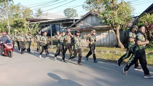 BARABAI-Bina kebugaran badan, anggota Kodim 1002/HST melaksanakan lari jalanan dipimpin langsung oleh Plh.PasiOpsdim 1002/HST Kapten Inf Anda Tiro.